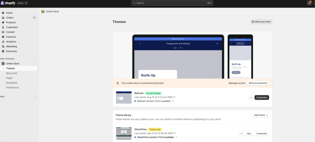 Prilagodba teme: Shopify nudi različite teme koje možete odabrati. Ove teme mogu biti besplatne, ili plaćene, sa više ugrađenh opcija (cca $350 je cijena službene Shopify teme na Shopify theme storeu). One dolaze s opcijama prilagodbe poput boja, fontova, postavki rasporeda i slično. Ove postavke možete lako prilagoditi putem uređivača tema u Shopify administrativnom sučelju bez pisanja koda. S dolaskom Shopify 2.0 tema, ove opcije su još više prilagođene tzv. no-code načinu rada.